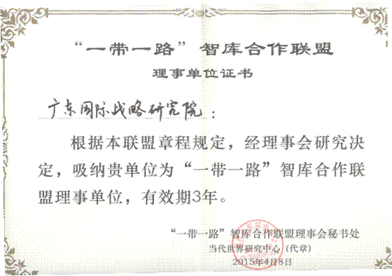 4月8日,“一带一路”智库合作联盟理事会成立会议暨专题研讨会在北京召开。广东国际战略研究院受邀成为“一带一路”智库合作联盟理事单位,秘书长李青受邀出席成立会议暨专题研讨会。