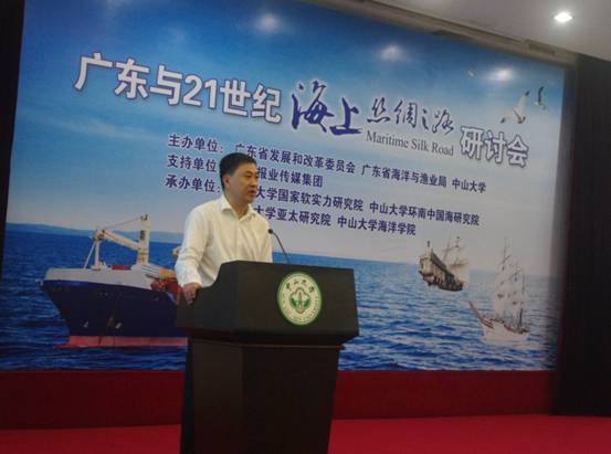 6月5日,由广东省发展和改革委员会、广东省海洋与渔业局、中山大学主办的“广东与21世纪海上丝绸之路研讨会”在中山大学南校区举行,我校党委书记、广东国际战略研究院常务副院长隋广军教授应邀出席,并做了“构建21世纪海上丝绸之路的战略路径选择”的专题发言。