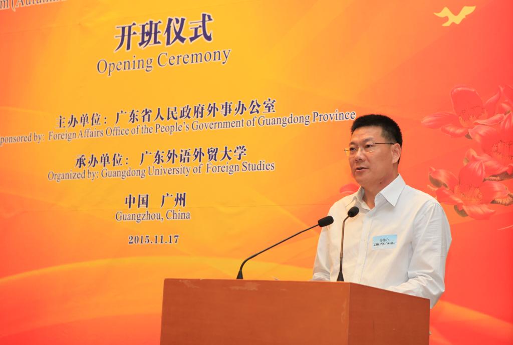 省友协秘书长周纪军、省外办综合处处长仓峰、综合处调研员李家兵、综合处副处长郑红梅,广外副校长方凡泉、国际合作与交流处副处长吴俊峰、太平洋岛国战略研究中心主任周方银、留学生教育学院院长梁学宏等出席了开班仪式。