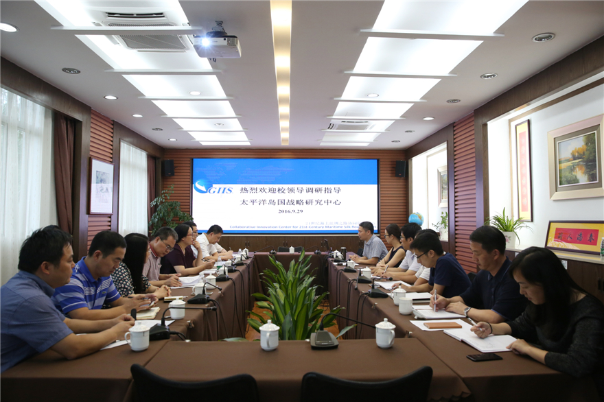 9月29日下午,校党委书记隋广军率领校党委副书记石佑启、副校长阳爱民以及党办校办、研究生院、教务处、科研处、人事处、财务处、后勤处、法学院、广东国际战略研究院等部门负责人一行到太平洋岛国战略研究中心开展工作调研,详细了解太平洋岛国战略研究中心的运行情况。