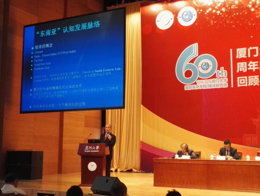 厦大国际关系学院、南洋研究院庄国土教授、泰国法政大学张锡镇教授以及北京大学吴杰伟教授分别围绕“中国东南亚研究”“东南亚政治研究”和“东南亚语言文化研究与人才培养”作学术研讨会主题报告,回顾了六十年来中国的东南亚研究,展望了研究前景。下午,学术研讨会围绕“一带一路”与东南亚:认知、反应与挑战,南海问题与地区安全,中国与东南亚国际关系三个专题展开讨论。海丝中心研究员薛力(中国社科院世经所)、李晨阳(云南大学)、吴磊(云南大学)、张振江(暨南大学)等分别担任专题发言嘉宾或主持人。