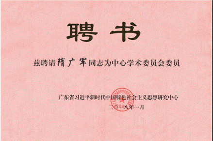 2018年1月29日,广东省委宣传部召开广东省习近平新时代中国特色社会主义思想研究中心成立座谈会。广东省省委常委、宣传部部长慎海雄出席,为中心揭牌并讲话。我校党委书记、校长隋广军获聘中心学术委员会委员。副校长阳爱民、广东国际战略研究院代表参会。