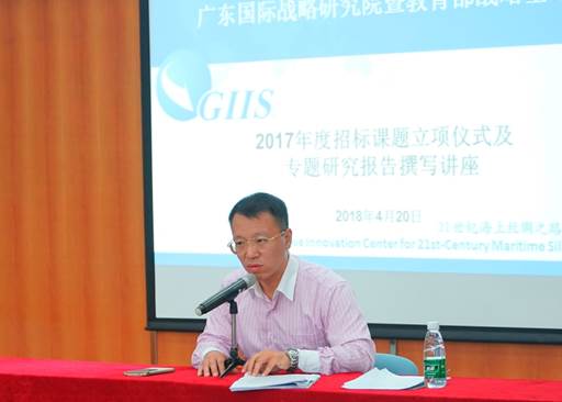 近日,广东国际战略研究院暨教育部战略研究基地2017年度招标课题立项仪式及专题研究报告撰写讲座在我校九教MBA中心举办,会议由广东国际战略研究院副秘书长曾楚宏教授主持。