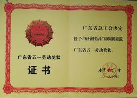 近日,经学校推荐、广东省总工会评选,我校广东国际战略研究院获广东省五一劳动奖状。这是我校有关单位首次获此殊荣。