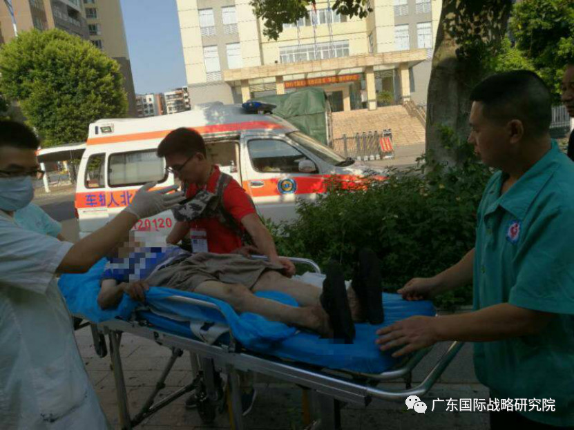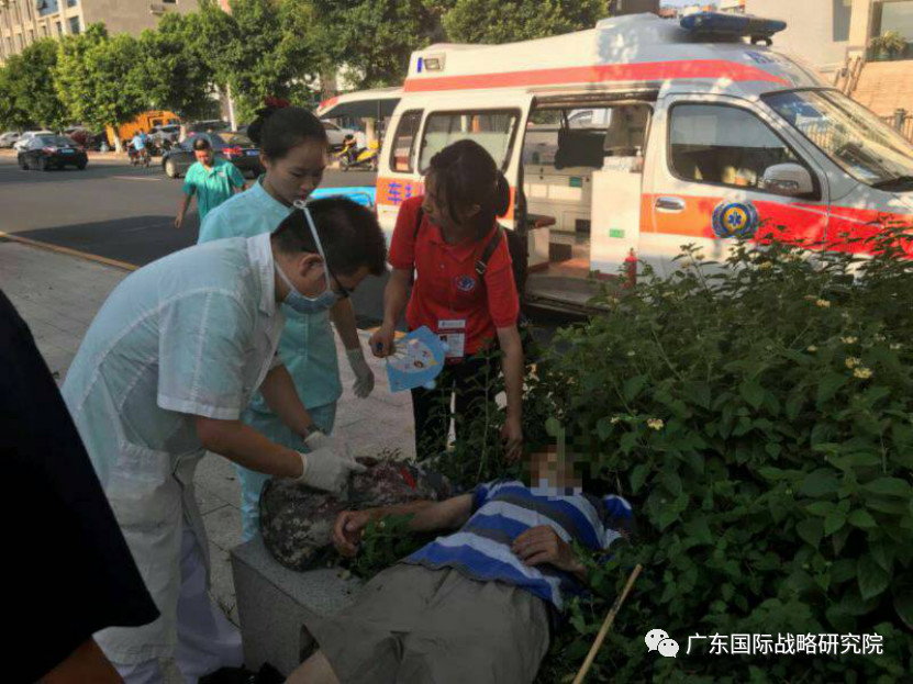 2018年7月19日下午,韶关浈江队队长兰迪和队员范希璇正准备前往下一个样本企业时,在江边的路上看到一个老爷爷躺在草丛中,旁边路人很焦急地拦下他们寻求帮助。经过观察,访员们初步判断可能是中暑,所以立刻拨打120,随后协力把老爷爷转移到阴凉的地方。他们给老爷爷喂了一些随身携带的藿香正气丸,涂了风油精,缓解了少许中暑症状。