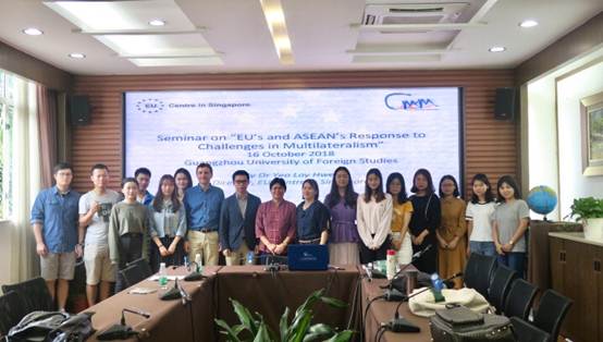 2018年10月16日,云山学术沙龙第224期、欧洲论坛第65期“The EU’s and ASEAN’s Response to Challenges to Multilateralism”讲座在我院举行。主讲人是来自新加坡欧盟中心的Yeo Lay Hwee教授,欧洲研究中心师生参与了该沙龙并就多边主义的问题进行了讨论。
