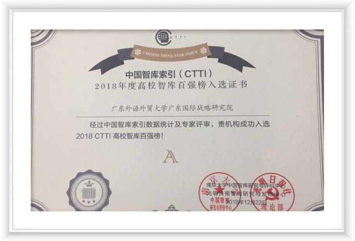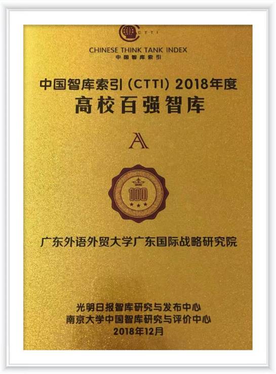 广东外语外贸大学广东国际战略研究院成功入选并被评定为“A”类智库。
