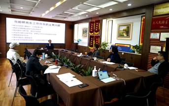 钟祖昌教授介绍了2020年和2021年研究生招生情况,提出了目前研究生培养和学位点建设中存在的主要问题,以及近期的重点工作安排。各学位点负责人就招生宣传、课程建设和教材设置等提出诸多建设性意见和建议。