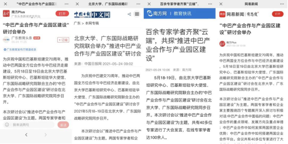 近日,我院与北京大学联合举办“推进中巴产业合作与产业园区建设”研讨会,受到中国日报、南方日报、南方网、网易新闻等媒体聚焦报道。