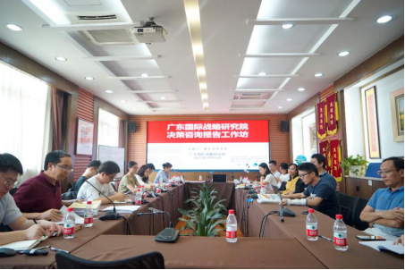 7月15日下午,我院举办决策咨询报告工作坊,特邀中国社会科学院国家全球战略智库研究员黄永光教授作为主讲嘉宾,工作坊由广东国际战略研究院副秘书长钟祖昌教授主持,秘书长李青教授及研究院各位老师参与。