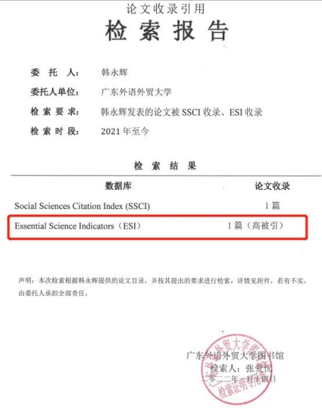 根据ESI数据库的界定,高被引论文指近十年间累计被引用次数进入各学科世界前1%的论文。