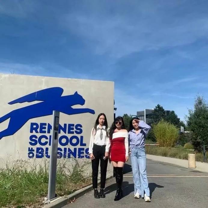 黄社秀(左二)和其他欧亚校园项目学子在法国雷恩高等商学院