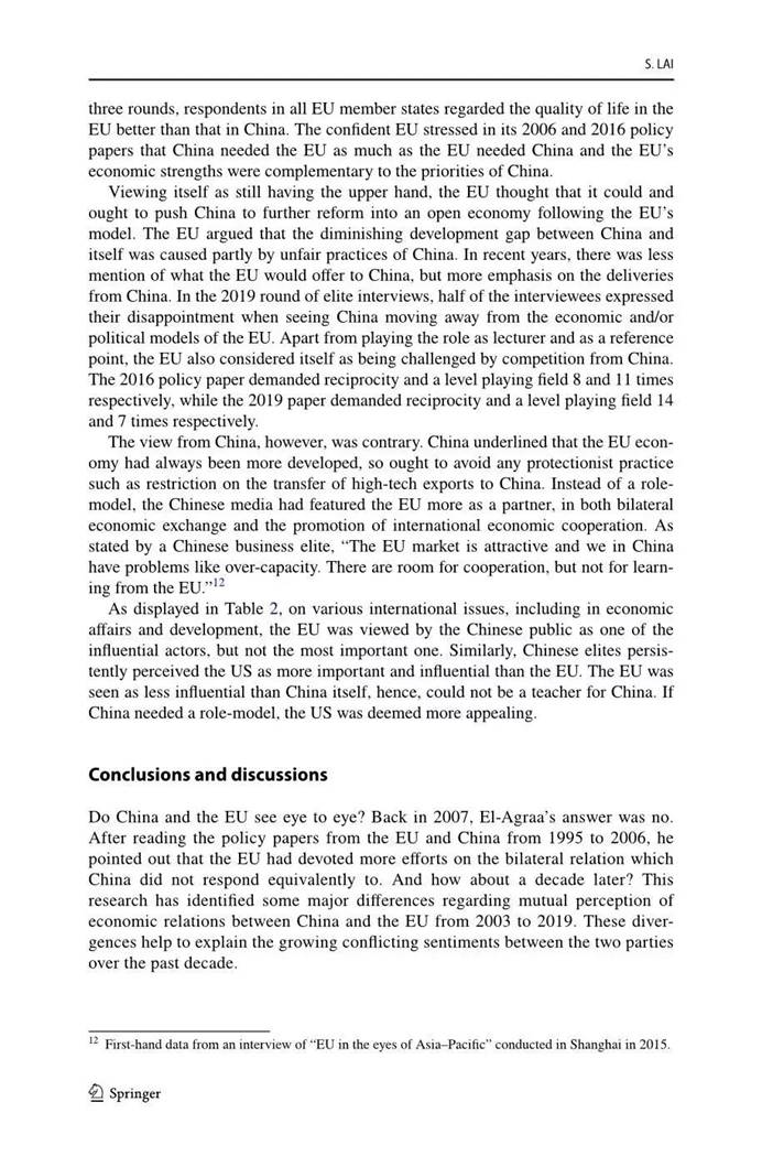 On 21 January, the paper 《Not seeing eye to eye: perception of the China-EU economic relationship》authored by Suetyi LAI was published on Asia Europe Journal.