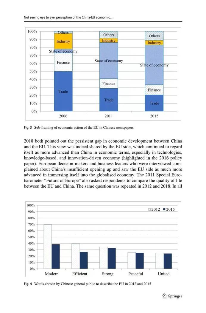 Economic relationship has been the cornerstone of the China-EU relation as well as the China-EU comprehensive strategic partnership which was established in 2003. On the other side of the coin, economic relations have been main sources of disputes between China and the EU since the 2005–2006 textile disputes. This paper examines their mutual perceptions in this field as one way of explaining the development of the bilateral relationship, supported by substantial empirical data. It is found that the successful economic development of China has generated different perceptions between the EU and China. With the difference in the development level reducing, the EU side was concerned more about the rise of China, while the Chinese side emphasised more the relative decline of the EU’s economic might.