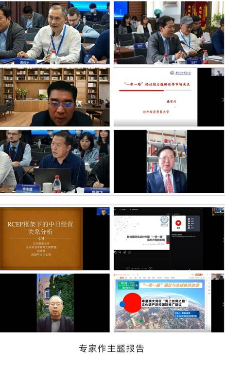 在第一阶段主题报告环节,重庆智库创始人兼总裁、中国大运河智库联盟理事长、首席研究员王佳宁从实例出发分析了我国现有的七个顶层设计战略;南开大学经济学院院长盛斌通过对比特朗普与拜登政府的政策分析了未来中美关系的总体基调;对外经济贸易大学国际经济研究院院长桑百川就“一带一路”如何助力缓解世界市场失灵进行了深入剖析;人民日报内参部主编辛本建对中国参与全球金融治理面临的问题与对策进行了全面阐述;中国研究生中心主任、泰国暹罗智库主席洪风就加强中泰两国合作与RCEP提出了对策建议;日本阪南大学流通学系教授兼企业信息学研究生院教授洪诗鸿深度分析了RCEP协议下的中日经贸关系;厦门大学一带一路研究院常务副院长陈武元展示了孔子学院和来华留学教育对中国“一带一路”海外并购的影响;辽宁大学国际经济政治学院院长刘文革报告了关键性政府政策变化对中国企业对外投资影响的研究成果;广东工业大学新兴经济体研究所所长蔡春林就粤港澳大湾区“海上丝绸之路”文化遗产游径国际推广发表了专业观点。