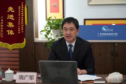 2020年7月10日,在“一带一路”智库合作联盟指导下,由广东外语外贸大学广东国际战略研究院、中联部当代世界研究中心主办,大连海事大学一带一路研究院和华侨大学海上丝绸之路研究院协办的“新冠肺炎疫情冲击下的全球产业合作与‘一带一路’建设”专题研讨会在北京、广州两地线上召开。中共中央对外联络部副部长郭业洲、广东省人大常委会副主任罗娟、泰国前国会主席颇钦·蓬拉军、马来西亚前国会下议院副议长翁诗杰、广东外语外贸大学党委书记隋广军出席研讨会并致辞。近30位中外政要、官员和知名学者参会发言,共同为疫情后国际产业合作和“一带一路”高质量建设建言献策。会议由隋广军教授主持。