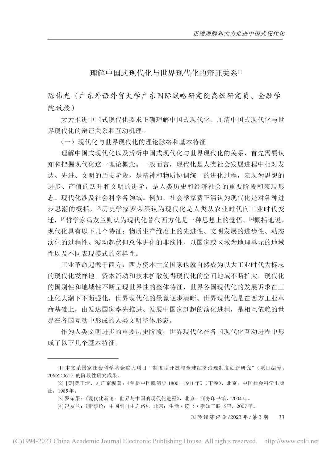 近日,我院高级研究员陈伟光教授与中国社会科学院经济研究所所长黄群慧研究员、南开大学讲席教授佟家栋、对外经济贸易大学国际关系学院院长戴长征教授合著的论文《正确理解和大力推进中国式现代化》发表于《国际经济评论》,该文引起学界较高关注。