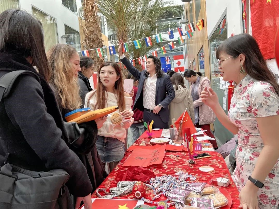 在英国兰卡斯特大学积极弘扬中华文化,以“福”字为例介绍了汉字的象形含义,赠与“红包”并分享了中国新年习俗与喜悦。 |