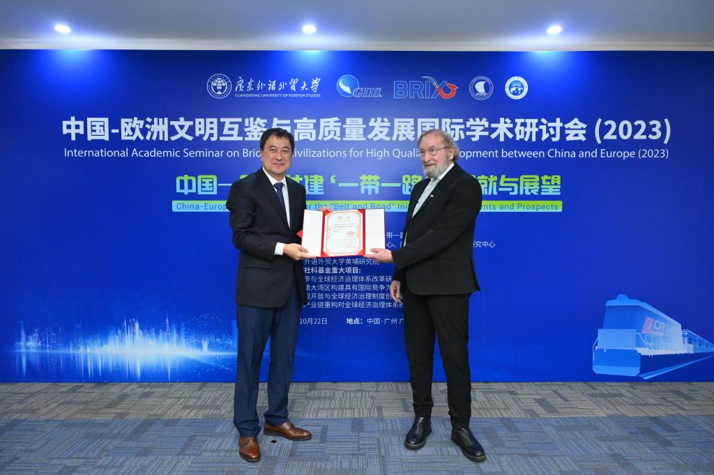 10月22日,中国-欧洲文明互鉴与高质量发展国际学术研讨会在广州顺利召开。本次会议以“中国-欧洲共建‘一带一路’:成就与展望”为主题,由广东国际战略研究院、瑞典“一带一路”研究院、21世纪海上丝绸之路协同创新中心和广东外语外贸大学欧洲研究中心联合主办,由广东外语外贸大学黄埔研究院承办。与会人士围绕共建“一带一路”倡议提出十周年来所取得的巨大成就、国际贡献及未来展望展开了热烈讨论,并从政治、经济、社会人文等不同角度为中欧进一步深化文明交流与合作提出了积极建议。