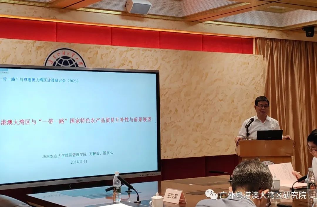 华南农业产业发展研究中心主任万俊毅分享了大湾区与“一带一路”国家特色农产品贸易互补性与前景展望。他指出,“一带一路”与农产品贸易是密切相关的,且大湾区与“一带一路”沿线国家和地区特色农产品贸易具有很强的互补性。他表示,大湾区要加强与“一带一路”沿线国家和地区的合作,实现农业安全从数量安全到质量安全再到营养安全的提升,增强特色农产品供应链的韧性。