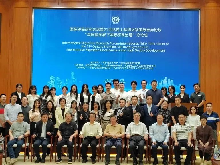 2023年11月11日,21世纪海上丝绸之路国际智库论坛主论坛在广州中新知识城国际会议中心召开。由广东外语外贸大学和广东省民族宗教研究院主办,国际移民研究中心、广东国际战略研究院、21世纪海上丝绸之路协同创新中心承办的“高质量发展下国际移民治理”分论坛在当天下午和晚上召开。会议邀请到联合国国际移民组织驻华代表柯吉佩(GiuseppeCrocetti)先生,广东外语外贸大学刘海春副校长,社会科学文献出版社国别区域分社张晓莉社长,教育部长江学者、云南师范大学周大鸣教授,德国洪堡学者、北京理工大学刘国福教授,山东大学宋全成教授、国家民族事务委员会国际交流司前副司长吴金光高级研究员,及多位国内国际移民研究专家参会,广东省民族宗教研究院、广州出入境边防检查总站、中国人民警察大学、广东外语外贸大学等单位70余位人员参会。