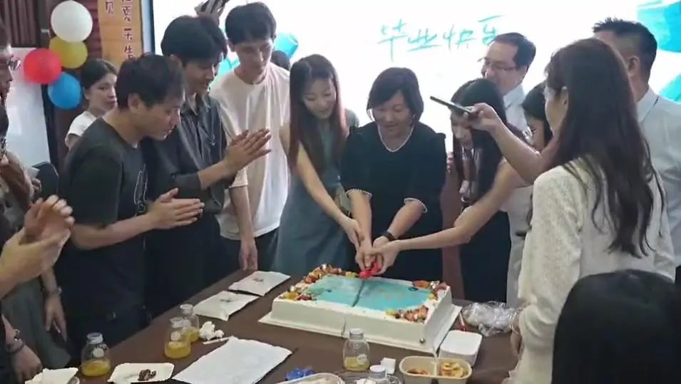 活动最后,李青教授与师生们一同切开送给毕业生的蛋糕并合影留念,定格了这一难忘的时刻。此次毕业生餐叙联欢活动不仅加深了师生间的情感联系,也为毕业生们在广东国际战略研究院的生活画上了一个圆满的句号。相信在未来的日子里,2024届毕业生们将带着研究院的期望与祝福,继续在各自的领域发光发热,书写更加辉煌的篇章。
