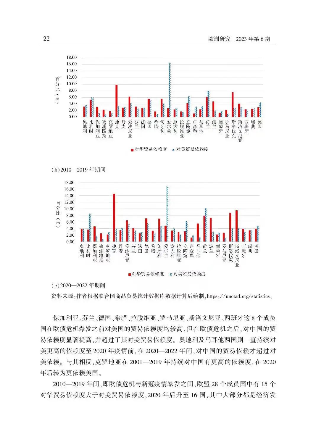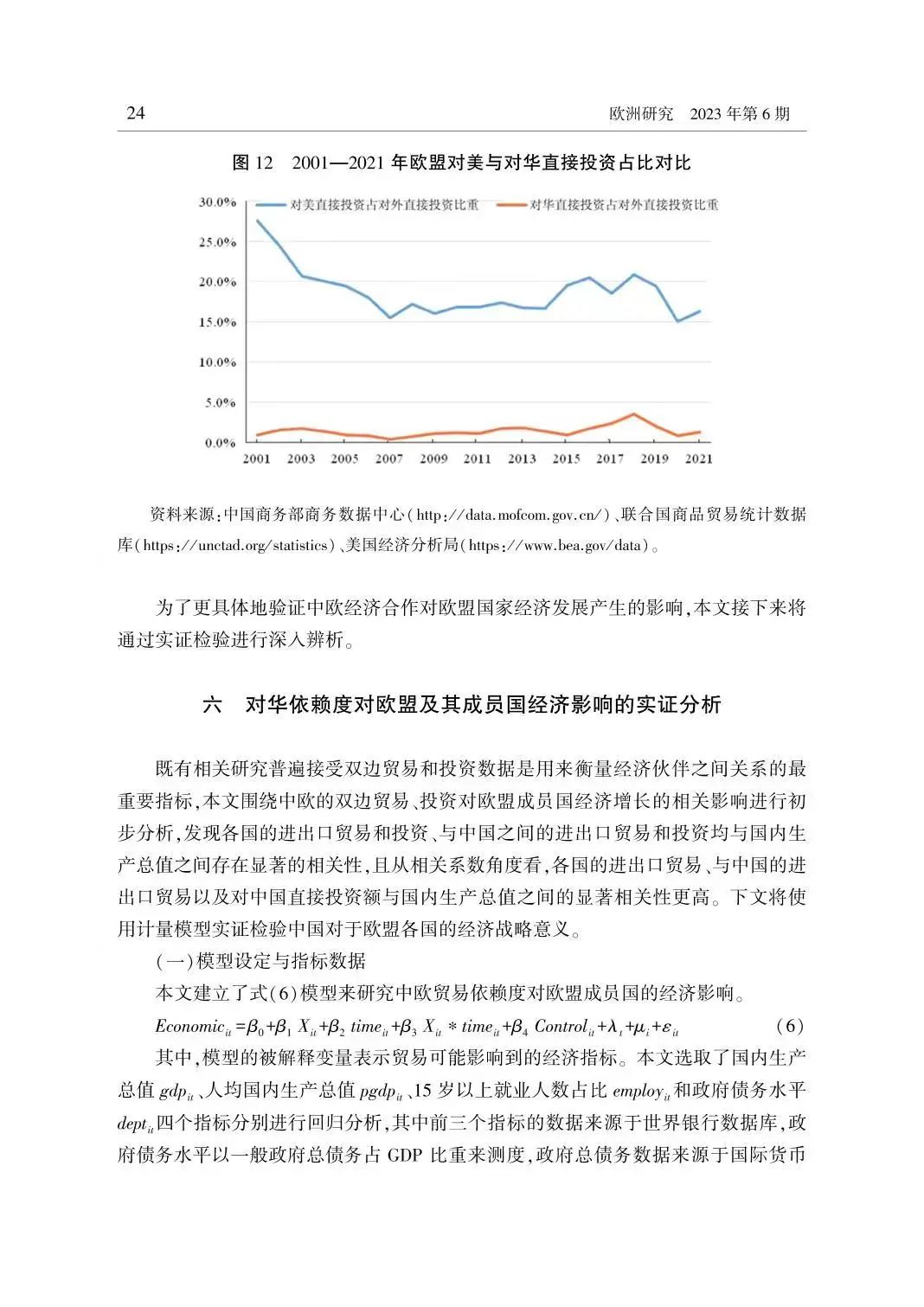 我院赖雪仪副教授与江苏省社会科学院区域现代化研究院助理研究员查婷俊合著的论文《欧盟对华经贸依赖及其对成员国影响的辨析》发表于《欧洲研究》(二类A)。通过分析2001-2022年中欧贸易及投资的特点,文章发现欧盟与中国的经济关系仍然处于不断加强的阶段尤其是新冠疫情下双边贸易的依赖程度仍在上升。
