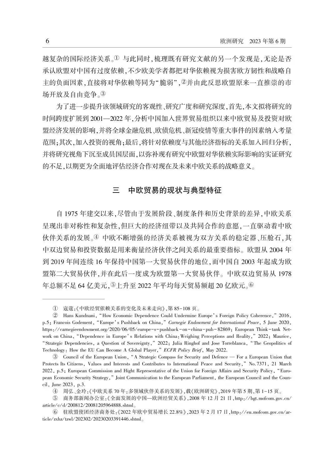 关键词:欧盟 对华依赖 中欧贸易 中欧投资 “去风险”