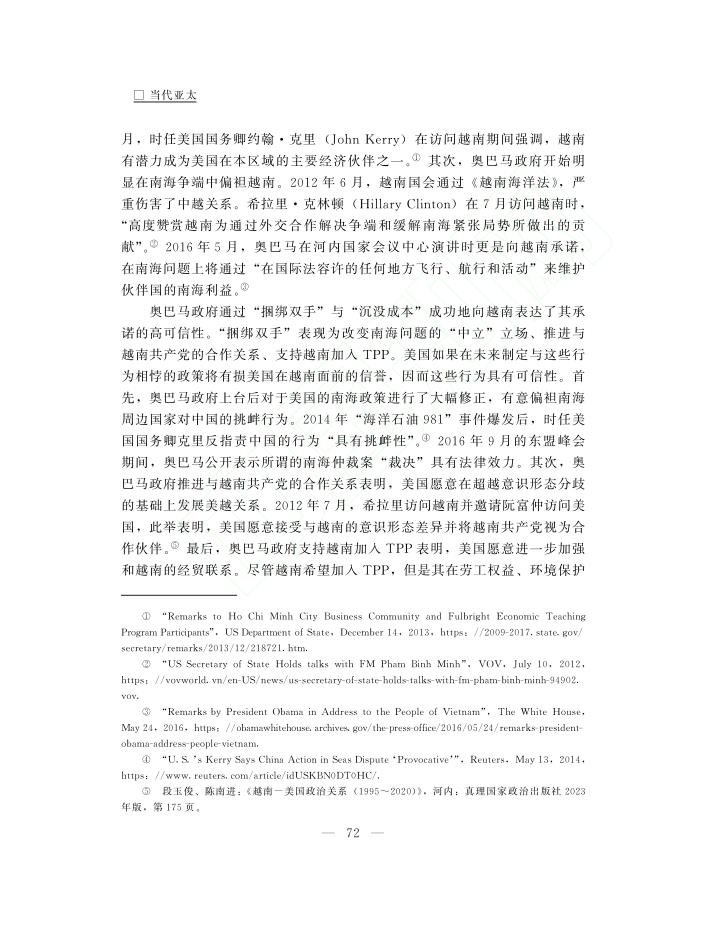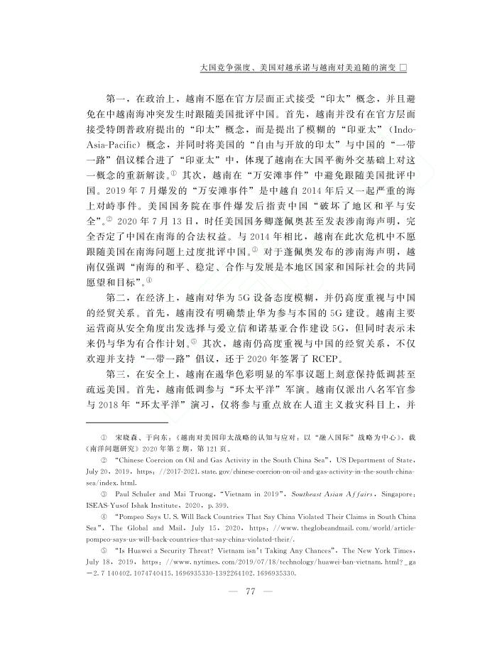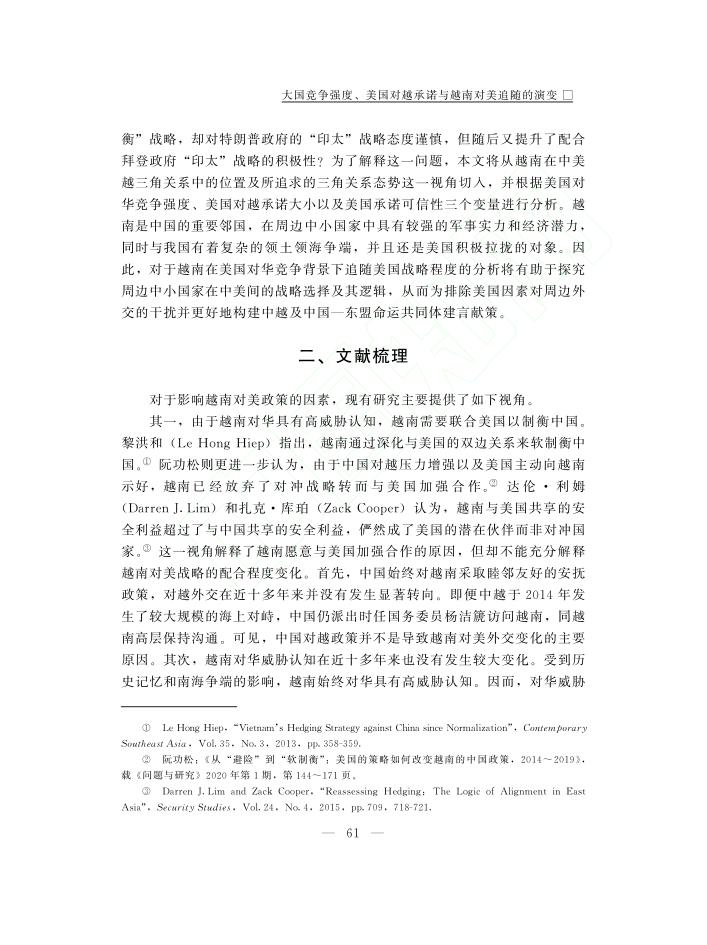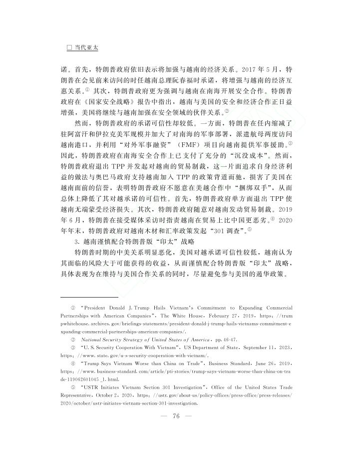 关键词:越美关系;“亚太再平衡”;“印太”战略;承诺可信性;追随