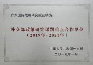 广东国际战略研究院聚焦“全球经济治理”“21世纪海上丝绸之路”“周边外交”“全球价值链”等重大问题,获广东省五一劳动奖状、广东省工人先锋号、全国首批党建样板党支部;2016-2018连续3年在国家发改委信息中心发布的《“一带一路”大数据报告》年度报告中,位列地方性智库影响力第3位;入选TTCSP亚洲大国智库(12家中国智库入选);入选中国智库索引(CTTI)2018 年度中国高校百强智库榜单,获评A类等级;位列2019年全国区域研究与国际关系领域智库排名第4位。